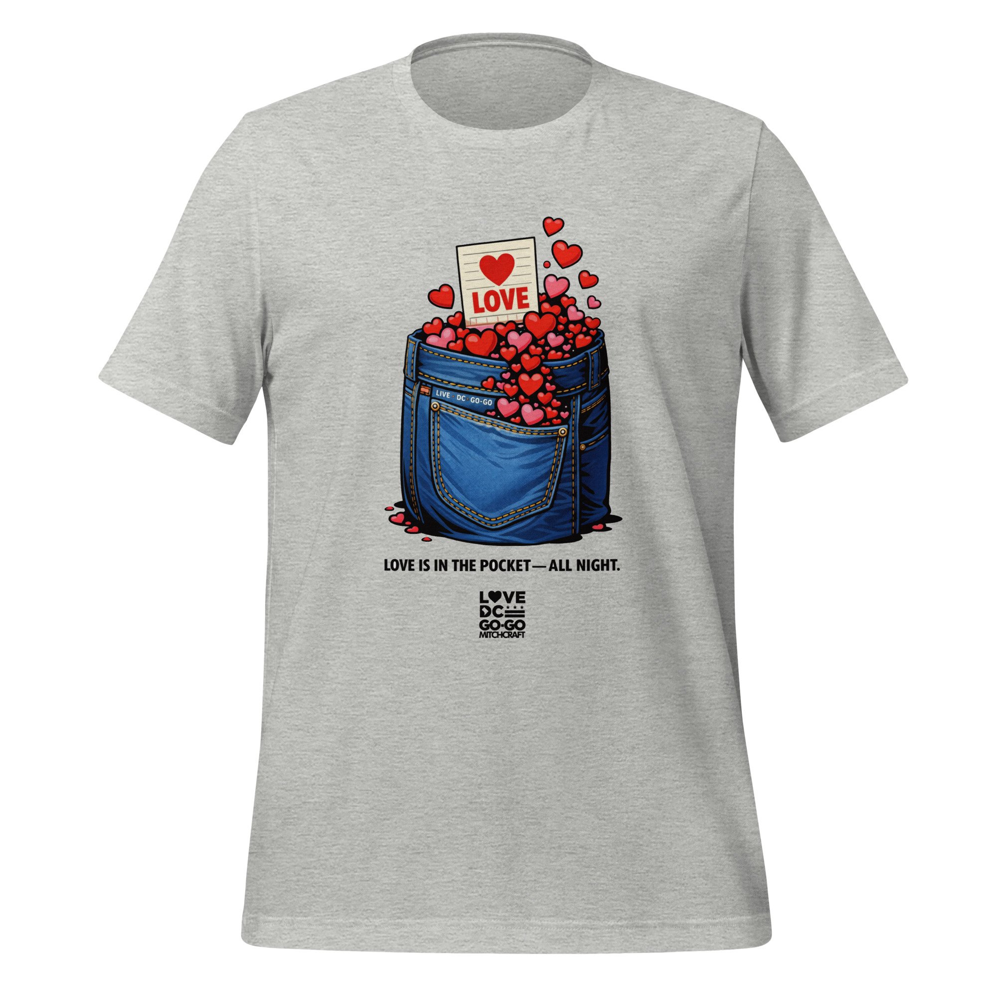 LOVEDCGOGO "LOVE IS IN THE POCKET" Go-Go Valentine Edition Unisex Tee (see color options)